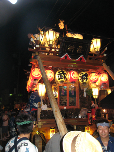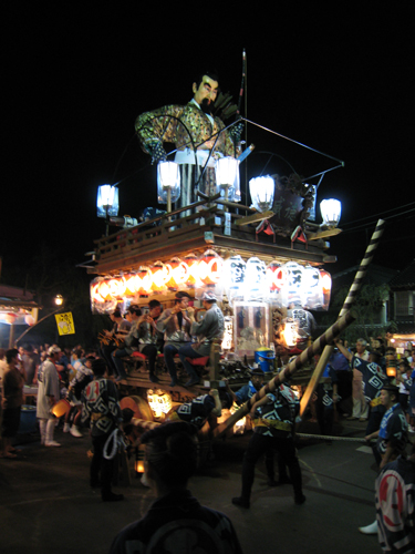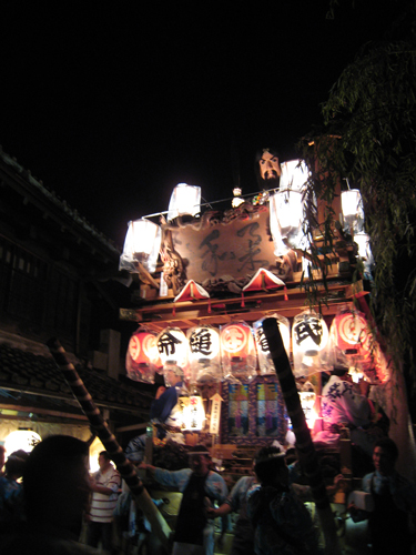 提灯に火が入ると、曳き手の興奮も高まってきます。