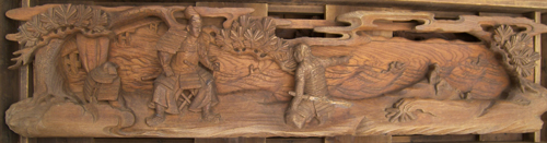 この彫刻は、正行が流されていく敵兵を救う場面が現されています。