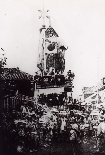 山車に提げて党の勢力の誇示または宣伝?をしようとしたのです。