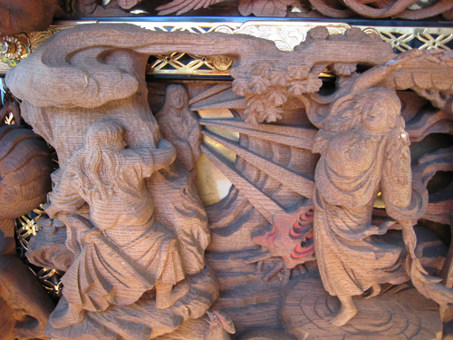 中日、PM11:00にほていや~佐原信金~千葉銀行付近に整列した山車は、番組(整列するし行列する)を組んだまま川岸へと進みます。川岸にて昼休憩をとった後、午後一時より総踊りを行います。午後二時からは通し砂切が行われ順次山車が出発いたします。