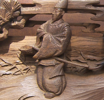又 この彫刻に書かれている人物。着物の下に鎧をつけているのです。